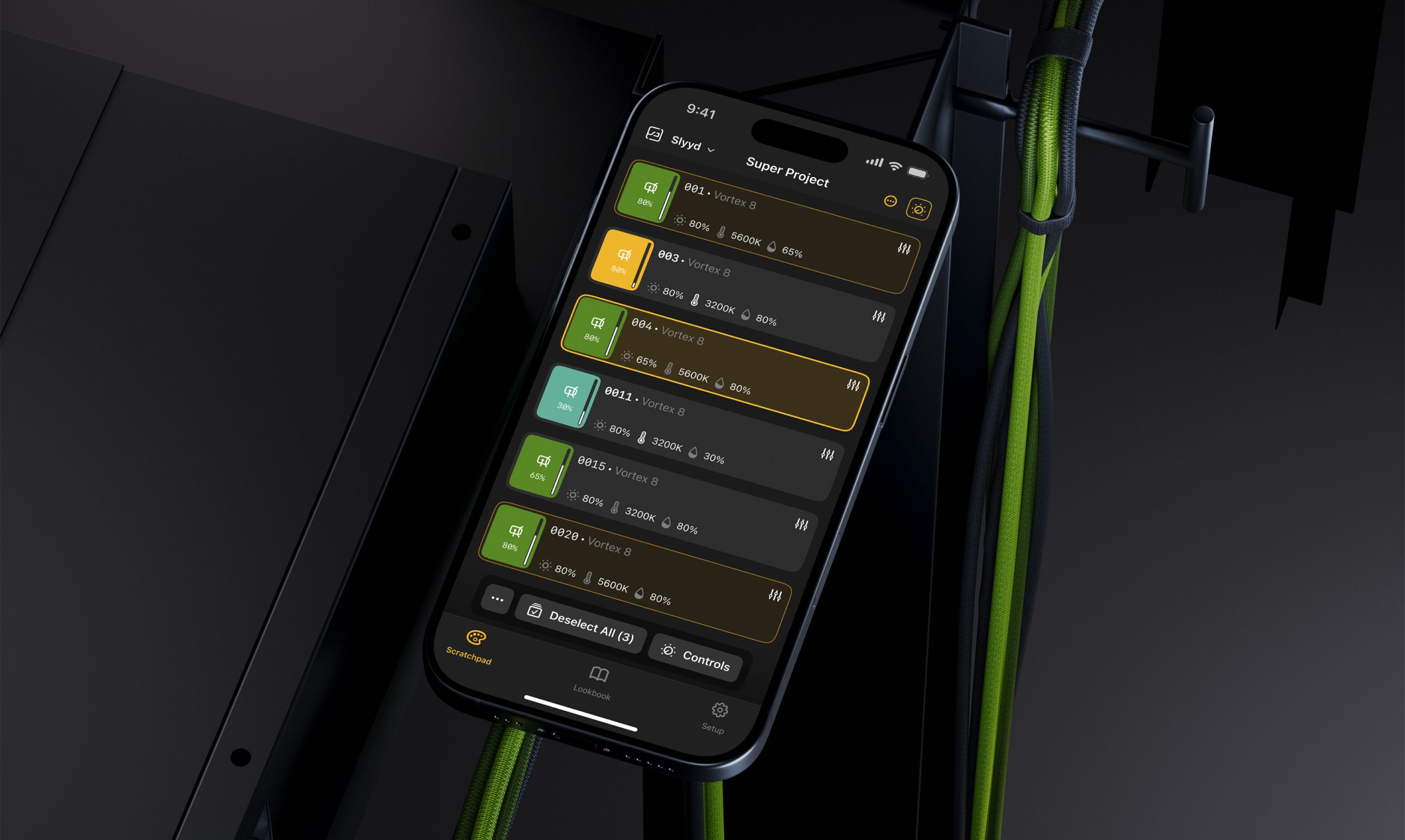 On set, light is everything—yet control has been fragmented for years. Each manufacturer follows different schemas and pre-digital conventions, creating chaos when seconds matter. Hardware consoles are powerful but inconsistent and steep to learn, often requiring extensive training that crews don't have time for.Slyyd needed to unify multi-vendor lighting into one coherent product while staying reliable under the stressful, seconds-count environment of professional film sets.